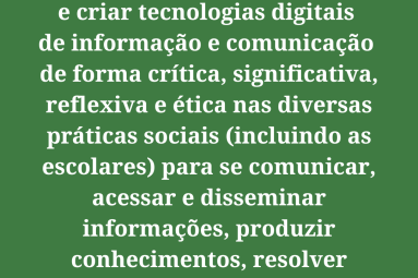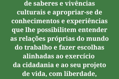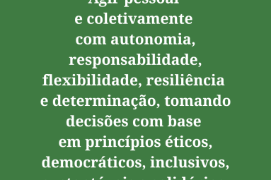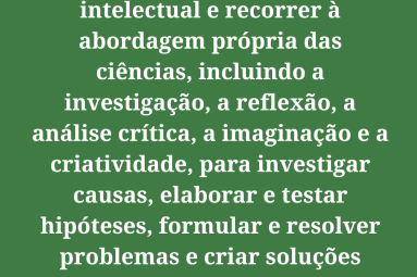 O documento define competência como “a mobilização de conhecimentos, habilidades […], atitudes e valores para resolver demandas complexas da vida cotidiana, do exercício da cidadania e do mundo do trabalho”.
