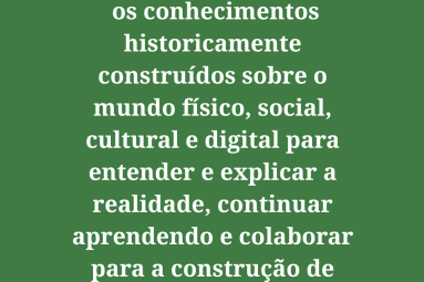 Clique na primeira imagem abaixo e arraste o carrossel para conhecer as dez competências gerais da educação básica, de acordo com a BNCC: