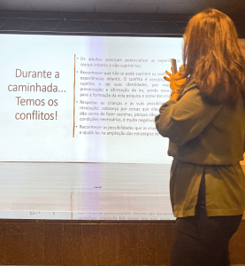 A professora falou também sobre os desafios de conviver com as pessoas e os conflitos que vêm daí. Ela esclareceu que, apesar do que se possa imaginar, essas situações são necessárias para que a criança se desenvolva moralmente.
